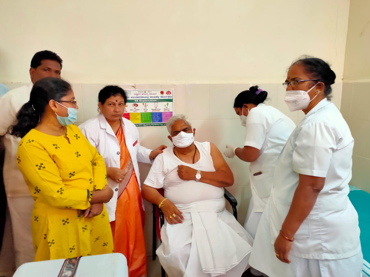 ರೋಣ: ಭೀಮಸೇನ್ ಜೋಶಿ ಆಸ್ಪತ್ರೆಯಲ್ಲಿ ಜಿಲ್ಲಾ ಕಾಂಗ್ರೆಸ್ ಅಧ್ಯಕ್ಷ ಹಾಗೂ ಮಾಜಿ ಶಾಸಕ ಜಿ.ಎಸ್.ಪಾಟೀಲ ಕೋವಿಡ್ ಲಸಿಕೆ ಹಾಕಿಸಿಕೊಂಡರು.