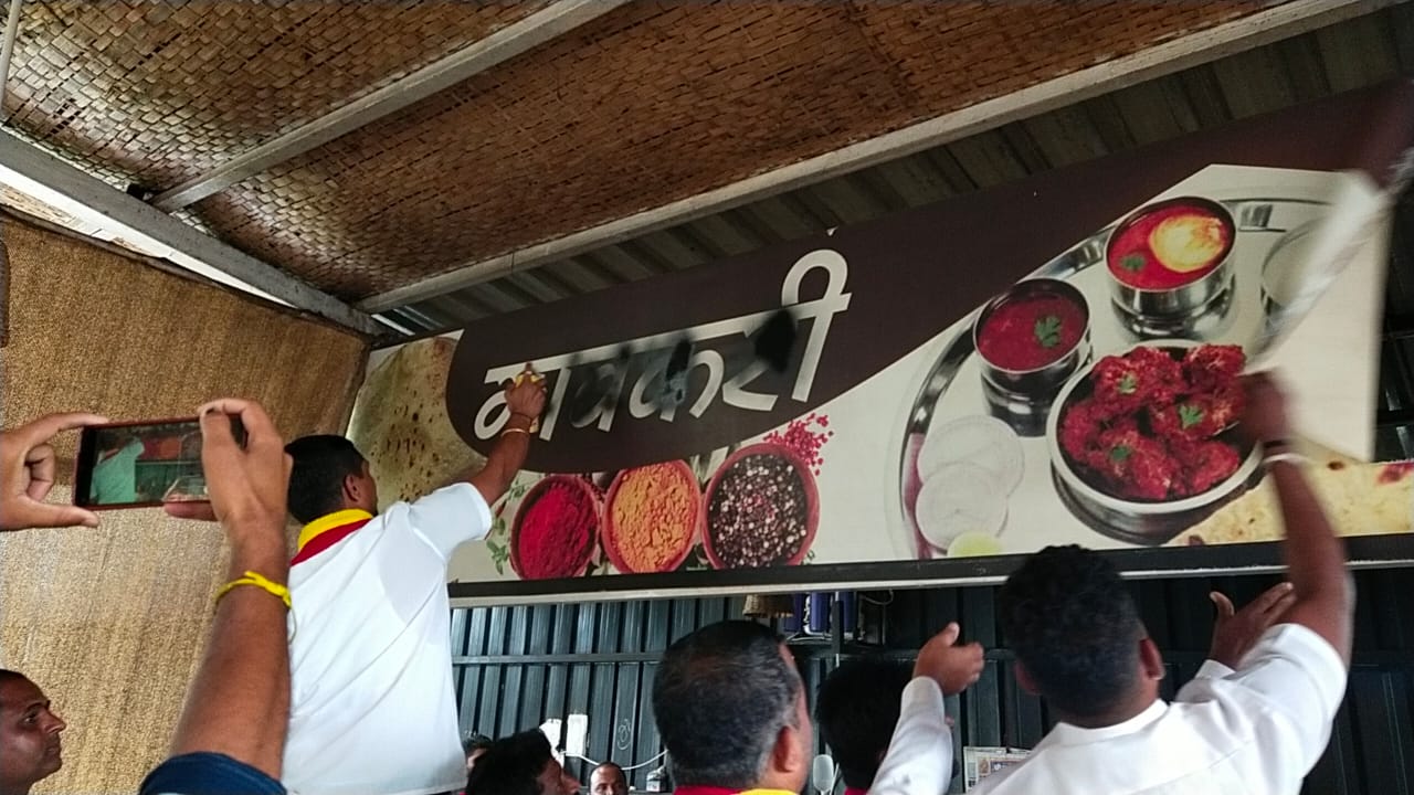 ಮಹರಾಷ್ಟ್ರದ ಕೊಲ್ಲಾಪುರದಲ್ಲಿ ಕನ್ನಡ ಭಾಷೆಯ ನಾಮ ಫಲಕ್ಕೆ ಮಸಿ ಬಳೆದು ಕನ್ನಡಕ್ಕೆ ಅವಮಾನ ಮಾಡಿದ್ದು, ಬೆಳಗಾವಿಯ ಅಂಬೇಡ್ಕರ್ ರಸ್ತೆಯ ವಾಯ್ ಜಂಕ್ಷನ್ ಬಳಿಯ ಹೊಟೇಲ್ ಒಂದರಲ್ಲಿ ಮರಾಠಿ ಭಾಷೆಯ ನಾಮ ಫಲಕ್ಕೆ ಕಪ್ಪು ಮಸಿ ಬಳೆದು ಕರವೇ ಪ್ರತಿರೋಧ ವ್ಯಕ್ತಪಡಿಸಿದರು.