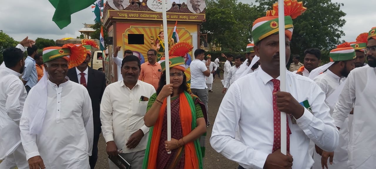 ಸಾವಿರಾರು ಸಂಖ್ಯೆಯಲ್ಲಿ ಯುವಕ,ಯುವತಿಯರು ರಾಷ್ಟ್ರಧ್ವಜದ ವಿಶೇಷ ಉಡುಗೆಯಲ್ಲಿ ತ್ರಿವರ್ಣ ಧ್ವಜದ ಪೇಟಾ ತಲೆಗೆ ಸುತ್ತಿಕೊಂಡು ನಡಿಗೆಯಲ್ಲಿ ಭಾಗಿಯಾದರು. ರಾಷ್ಟ್ರ ನಾಯಕರ ಸ್ತಬ್ಧ ಚಿತ್ರಗಳು, ಕರಾವಳಿ ಭಾಗದ ಜನಾಕರ್ಷಕ ಕೌಂಶಾಳೆ ಸೇರಿದಂತೆ ವಿವಿಧ ಯಕ್ಷಗಾನಗಳ ನೃತ್ಯ, ದೇಶಾಭಿಮಾನದ ಗೀತರಾಗಗಳು ಗಮನ ಸೆಳೆದವು. ಮಂಜಪ್ಪನವರ ಪುತ್ಥಳಿಗೆ ಪೂಜೆ ಸಲ್ಲಿಸಿ ಯಾತ್ರೆಗೆ ಚಾಲನೆ ನೀಡಲಾಯಿತು. ವಿವಿಧ ಇಲಾಖೆಯ ಅಧಿಕಾರಿಗಳು, ಗಣ್ಯರು, ಶಾಲಾ,ಕಾಲೇಜು ಮಕ್ಕಳು ಮೊದಲು ದಿನದ ಆರಂಭ ನಡಿಗೆಯಲ್ಲಿ ಉತ್ಸಹದಿಂದ ಪಾಲ್ಗೊಂಡಿದ್ದರು. ಮಾಜಿ ಸಚಿವ ಎಸ್.ಕೆ.ಬೆಳ್ಳುಬ್ಬಿ, ಉದ್ಯಮಿ ಭರತಗೌಡ ಪಾಟೀಲ, ಎಸ್.ವಿ.ವಿ.ಸಂಸ್ಥೆಯ ಕಾರ್ಯದರ್ಶಿ ಶಿವಾನಂದ ಪಟ್ಟಣಶೆಟ್ಟಿ, ನಿಡಗುಂದಿ ಶ್ರೀ ರುದ್ರಮುನಿ ಶಿವಾಚಾರ್ಯ ಸಾಮೀಜಿ, ಮಾಜಿ ಸೈನಿಕರು, ಹಲ ಗಣ್ಯಾತೀತ ಗಣ್ಯರು ಉಪಸ್ಥಿತರಿದ್ದರು.